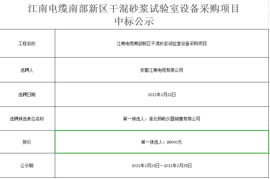 » 中標公示