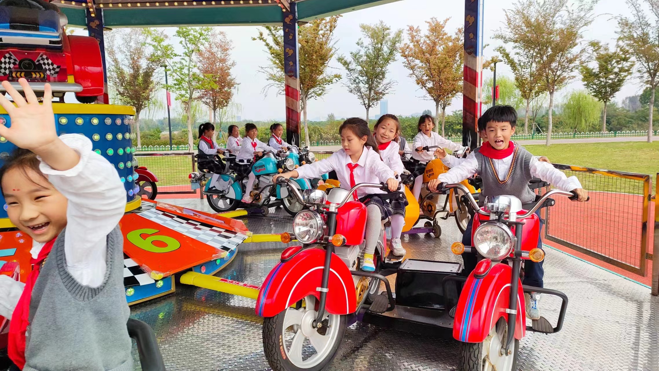 秋風起,秋意濃,正是秋季研學的好時光,開啟綠金湖秋天的第一場研學旅行。2023年10月12日上午,由淮北市南湖公園運營管理有限公司組織,紅黃藍幼兒園配合,共98名師生們在綠金湖湖圓夢島開展秋游研學之旅;下午14時,星月素質拓展學校近400名學生前往綠金湖游藝園體驗游藝項目,孩子們切身體會到人文景觀和自然景觀的完美結合的魅力。