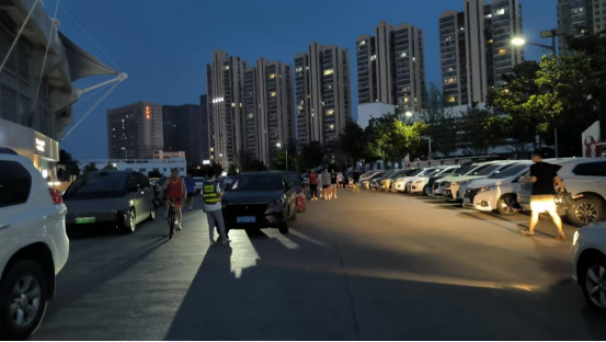 城泊公司針對體育中心周邊車流、人流集中的特點,提前制定保障方案,增派經驗豐富的員工負責現場值守。活動從傍晚7點開始,身著制服的城泊員工在停車場入口、內部道路交叉口、車位密集區等關鍵點位開展引導工作,成為夜市里一道忙碌而溫暖的風景線。