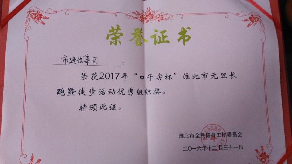 我們在運動中迎來新的一年,在運動中精神百倍地向新的希望邁進。活動結束后,員工們雖都大汗淋漓,但個個都精神煥發,紛紛表示在2016的最后一天,以萬人長跑的形式迎接嶄新的一年很有意義,讓人身心愉快。在大家的共同努力下,市建投集團獲得“2017年‘口子窖杯’淮北市元旦長跑暨徒步活動優秀組織獎”,進一步激發了集團公司員工奮發向上的精神,將更好的以健康的體魄和良好的精神風貌投身到工作中去,推進集團公司2017年新工作的全面發展。