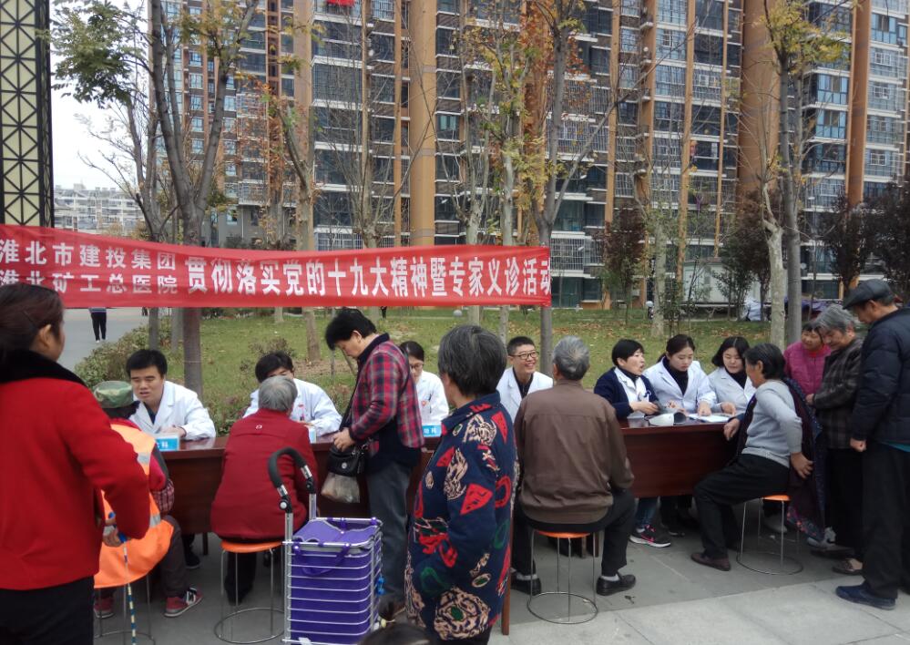 2017年11月12日上午,市建投集團聯合礦工總醫院在結對幫扶社區康樂社區開展宣傳貫徹黨的十九大精神暨專家義診活動。