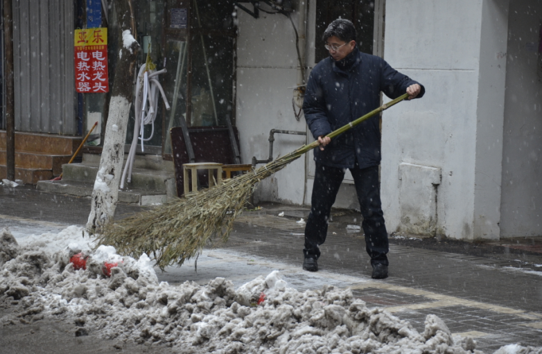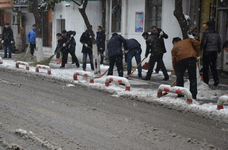 在紀(jì)委書記王獻忠、總經(jīng)理助理朱濤的帶領(lǐng)下,廣大干部職工紛紛拿起鐵鍬、掃帚等工具,不畏嚴(yán)寒,你鏟我掃,相互配合,一點點地將積雪和冰層鏟起清除。盡管大家的臉都凍得通紅通紅,但手中的掃雪工具卻不停地?fù)]舞著,忙得渾身是汗,在歡聲笑語中掃出了暢通的大道,受到過往市民的紛紛稱贊。
