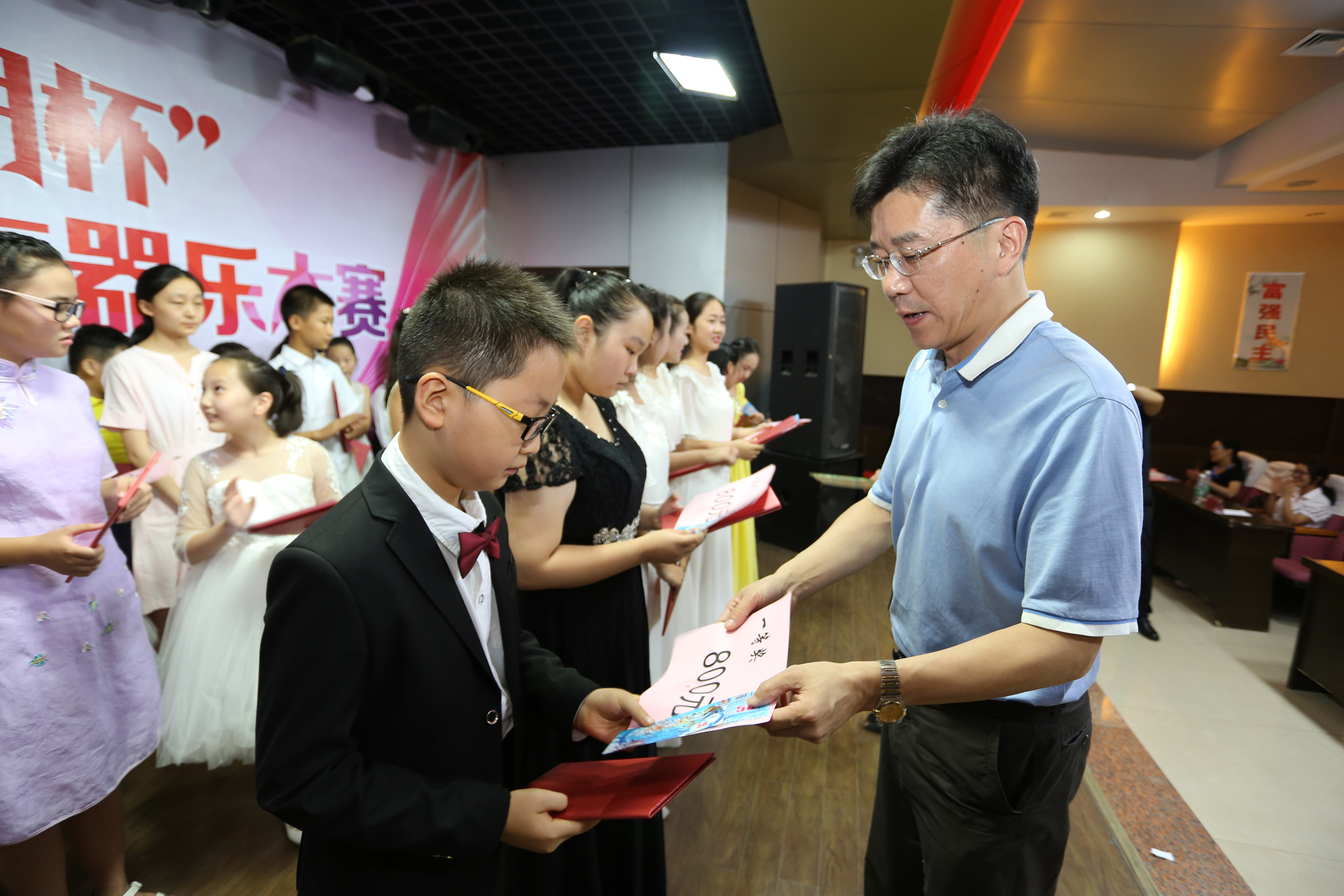 8月26日下午,“南湖杯”首屆青少年器樂大賽頒獎(jiǎng)典禮在市老年大學(xué)一樓會(huì)議室舉行。淮北市文化旅游體育委員會(huì)黨委委員、副主任吳文閣,淮北市建投控股集團(tuán)有限公司黨委委員、紀(jì)委書記王獻(xiàn)忠等出席頒獎(jiǎng)典禮,并為獲獎(jiǎng)選手頒獎(jiǎng)。
